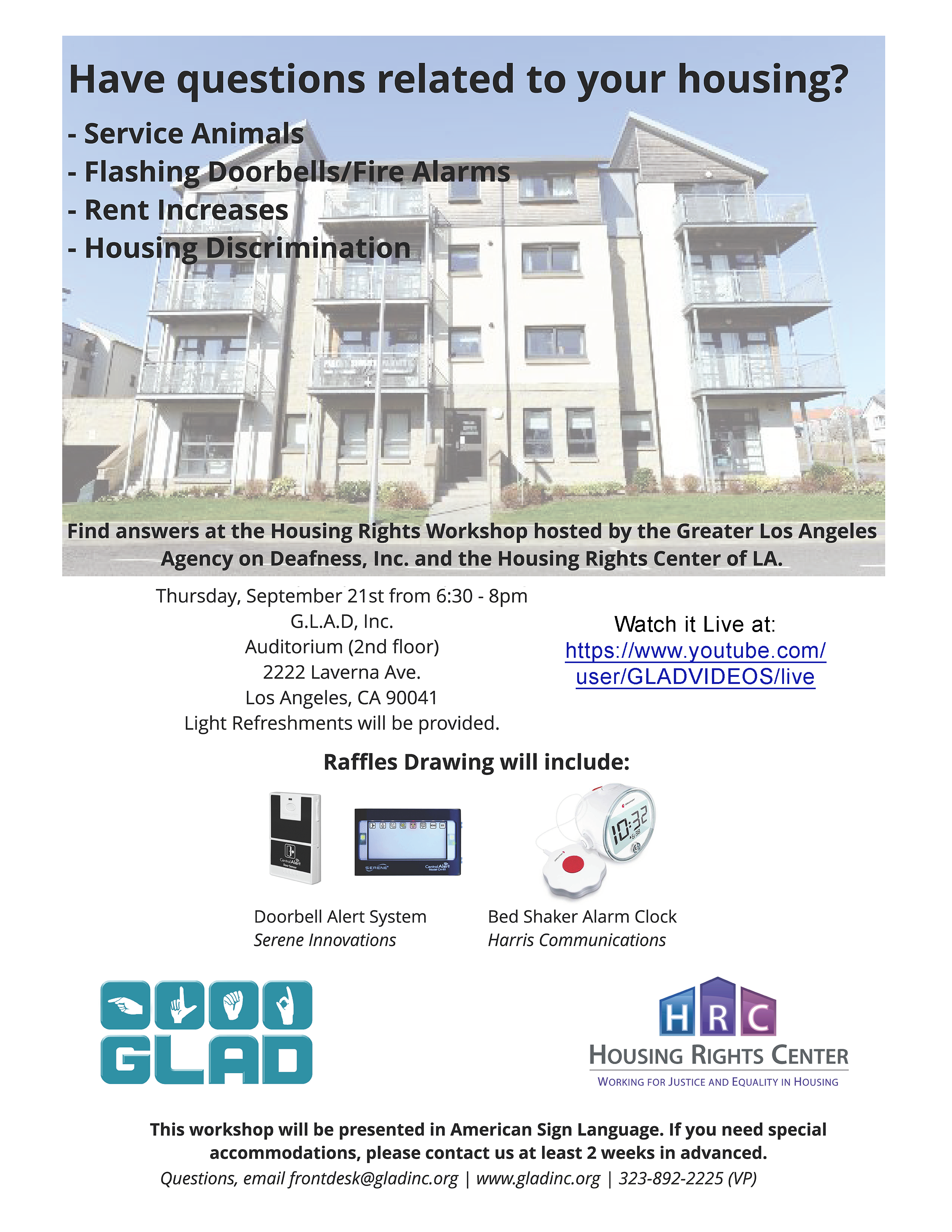 GLAD and The Housing Rights Center will have an educational workshop on Housing Rights.