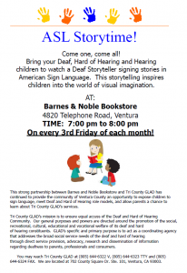 Find out more »ASL Storytime at Barnes & Noble, Ventura (Tri-County GLAD)